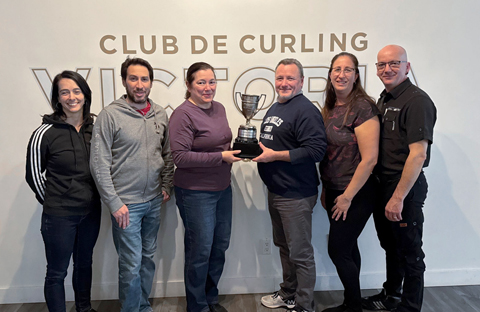 Toutes nos félicitations à l’équipe Elmaleh qui, pendant la fin de semaine dernière, a obtenu son laissez-passer pour le championnat Tankard qui se tiendra du 4 au 11 janvier prochain. Ils ont remporté le tournoi Caravan au club de Curling Clermont. Bravo à Maxime Elmaleh (absent), Antoine Provencher, Sébastien Audet, David Boivin et Steven Munroe.